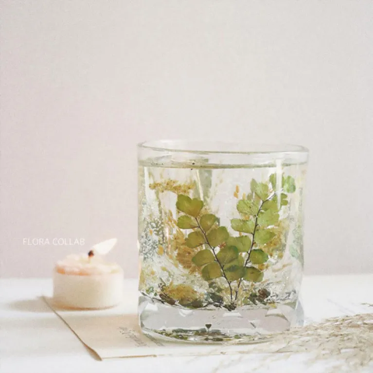 Dried petals are arranged harmoniously, combined with the shimmering candlelight from the gel wax to create a spectacular combination.