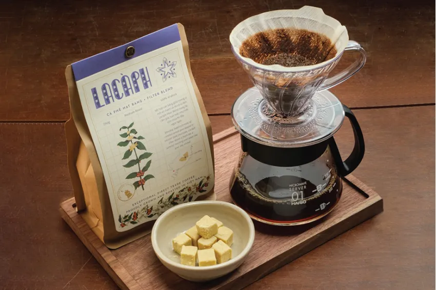 Lacàph Filter Blend is made from high-quality Arabica beans that are hand-harvested from the coffee plantations of the K'Ho people in the Central Highlands of Vietnam. After being washed and dried naturally, the coffee is transported to the Lacàph roasting facility to be blended with two other types of beans from other farms. Lacàph Filter Blend is a coffee that has a smooth balance of sour and sweetness.