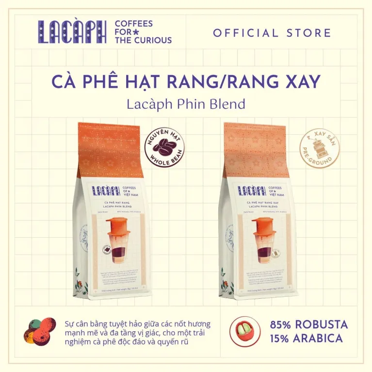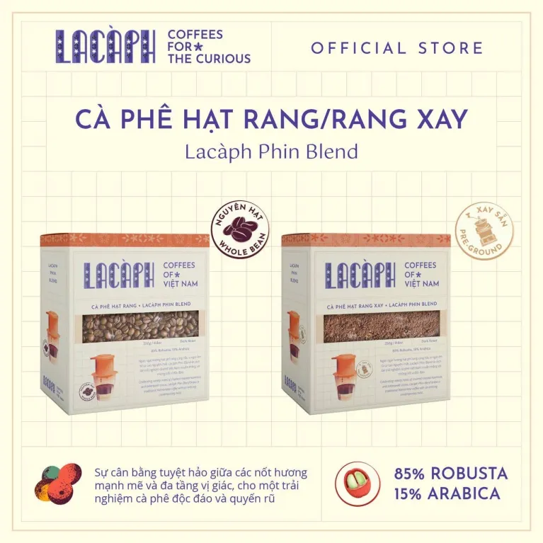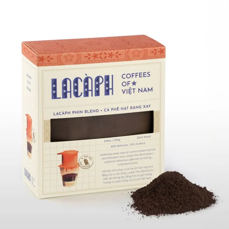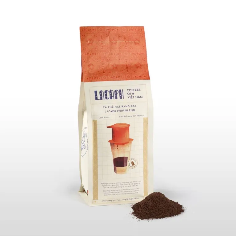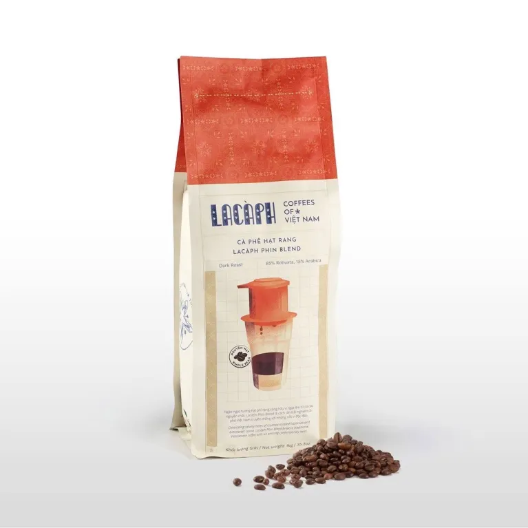 Lacàph Phin Blend is a coffee blend made from high-quality Robusta beans grown in the red soil of Đắk Nông Province, Vietnam. The Robusta beans are processed using the honey process, which helps to increase sweetness and create more layers of flavor. Lacàph Phin Blend is a coffee that is balanced and modern, with a slightly different flavor profile than traditional Vietnamese phin coffee.