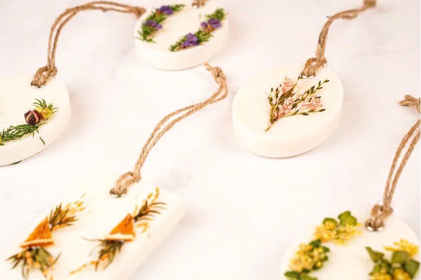Candles and fragrant wax at Flora are made of palm wax and natural essential oils and the flowers are handpicked and sourced from local farms in Dalat.