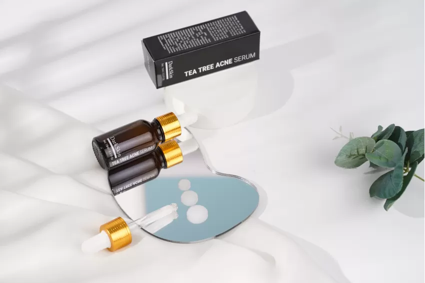 Tea Tree Acne Serum from DarkSkin helps with the inflammation, killing bacteria 4h right after use. Additionally, this product also moisturizes and heals problemed skin and lightens dark acne scars. Choose the best care for your acne skin with Tea Tree Acne Serum from DarkSkin.